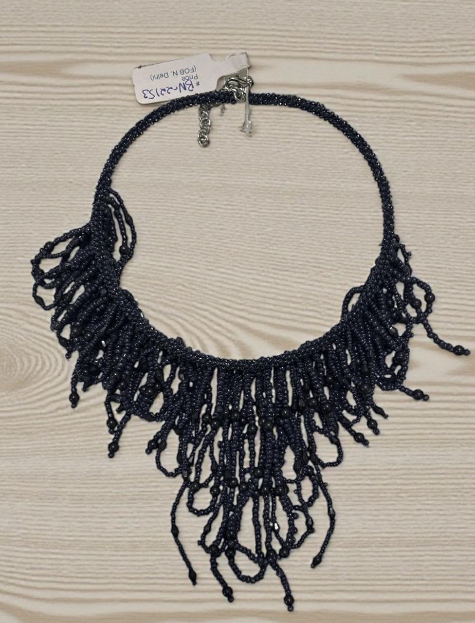 Make a bold style statement with this handcrafted seed bead necklace, featuring a striking fringe design in classic blue. Meticulously woven seed beads form a graceful collar, while cascading beaded tassels add movement, texture, and an elegant edge. Finished with a secure clasp and adjustable chain for a comfortable fit, this necklace pairs beautifully with both casual and evening wear. Perfect for those who appreciate artisanal craftsmanship and timeless, versatile accessories.