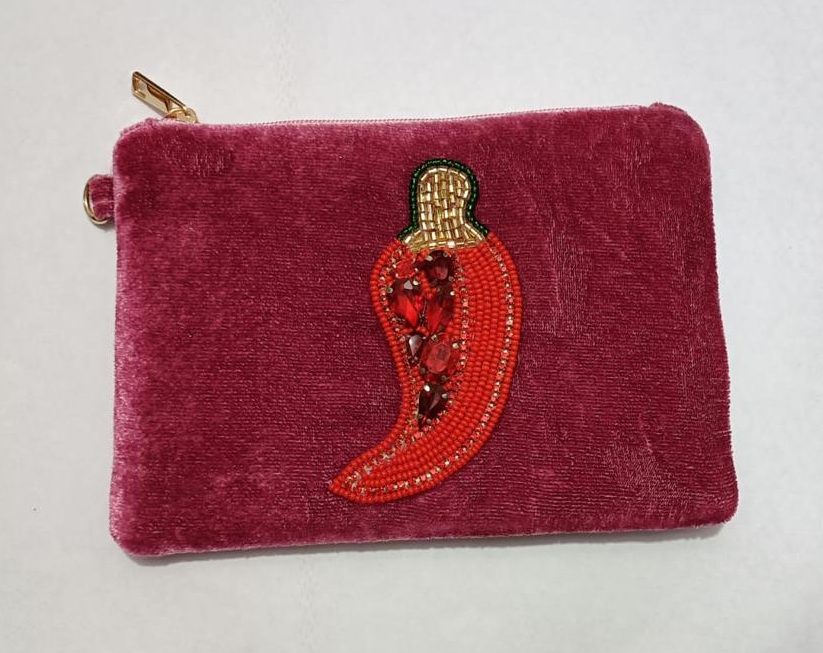 Luxury Velvet pouch with Hand-Embroidered Chili