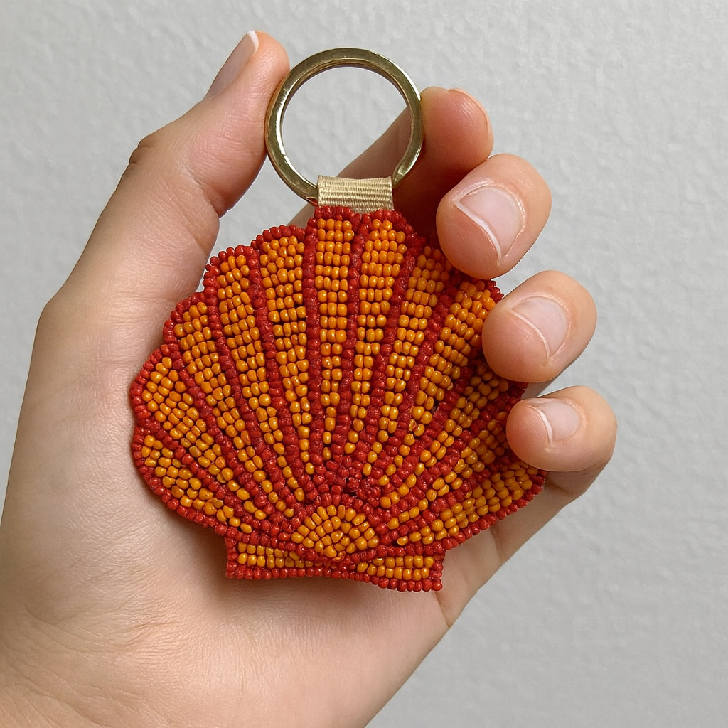 Bring the beauty of the sea to your everyday look with this radiant shell keychain. Designed with vibrant orange and red beadwork, it captures the warmth of a sunset on the shore. A perfect coastal-inspired accessory for your keys, handbags, or beach vibes.